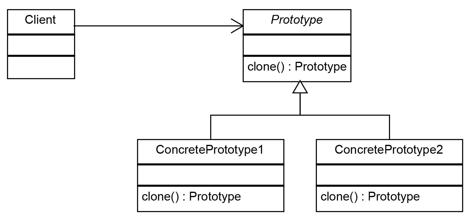 }In this example, the IPrototype interface defines the Clone method, which is used to create a copy of an existing object. The ConcretePrototypeA class implements the IPrototype interface and defines the clone method. The Client class has used this possibility to create a copy of an existing object.