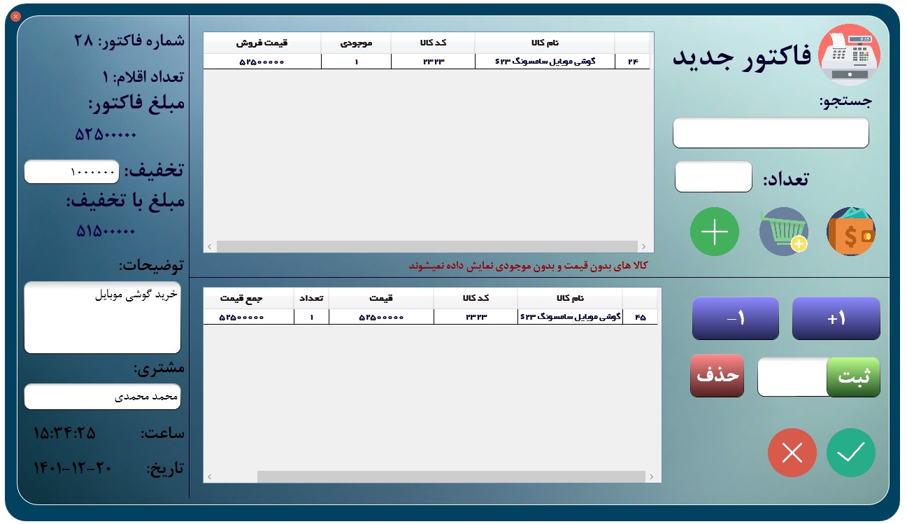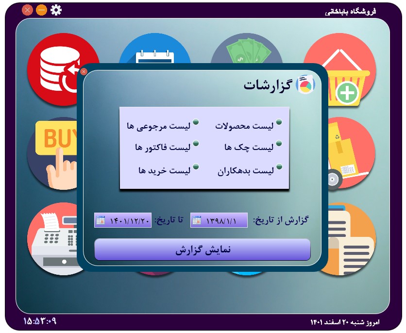 در نهایت، این برنامه گزارش های مختلفی مانند گزارش فروش، گزارش خرید، گزارش موجودی و گزارش بدهکار را ارائه می دهد. این گزارش ها به مدیران فروشگاه کمک می کند تا عملکرد خود را تجزیه و تحلیل کنند و تصمیمات آگاهانه بگیرند.