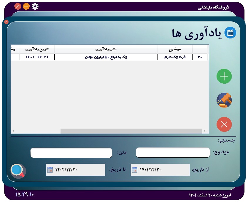 این برنامه همچنین دارای ویژگی یادآوری است که وظایف مهمی مانند سفارش مجدد محصول، سررسید پرداخت و سایر تاریخ های مهم را به صاحبان فروشگاه یادآوری می کند.