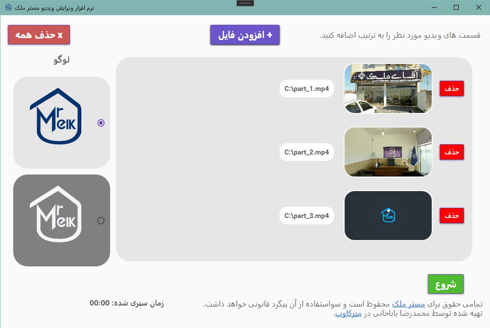 در پایان ذکر این نکته ضروری است که این نرم افزار به صورت انحصاری برای مسترملک بنا به درخواست آنها تولید شده است. این بدان معنی است که این نرم افزار به طور خاص برای رفع نیازهای مسترملک طراحی شده است و ممکن است با نیاز های شما تطابق نداشته باشد.