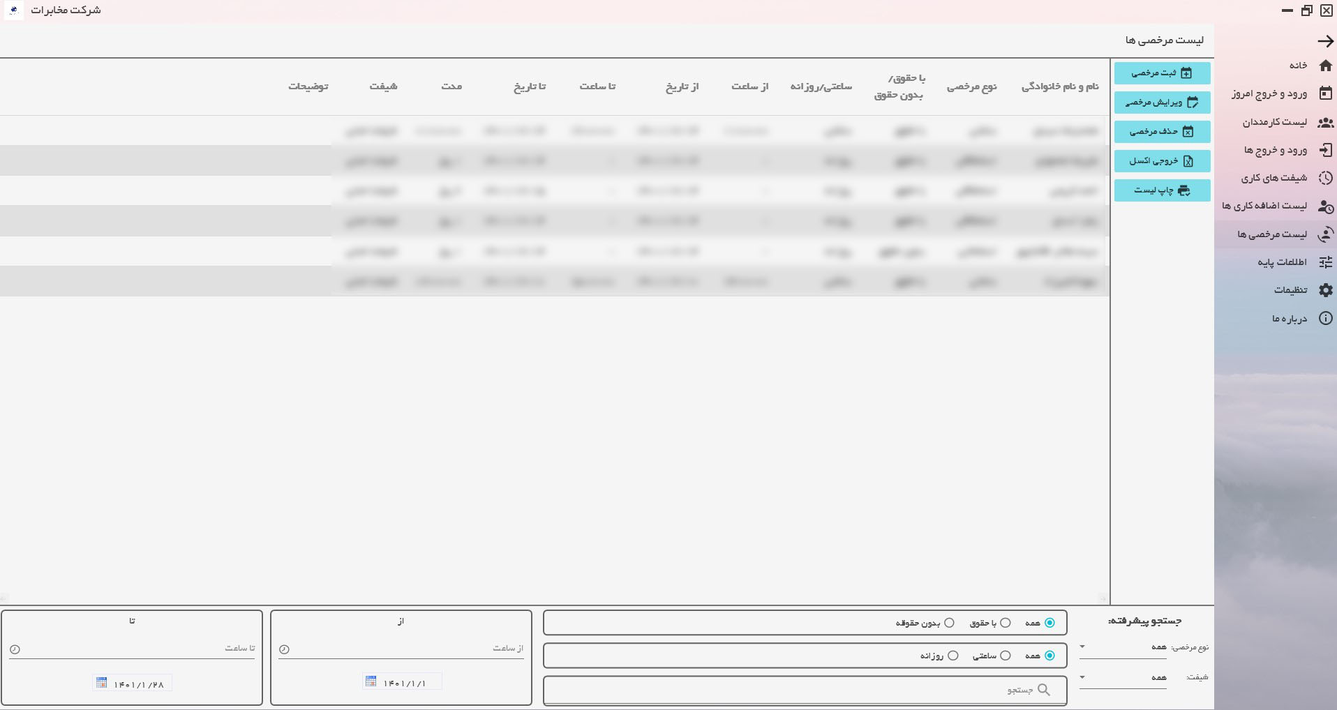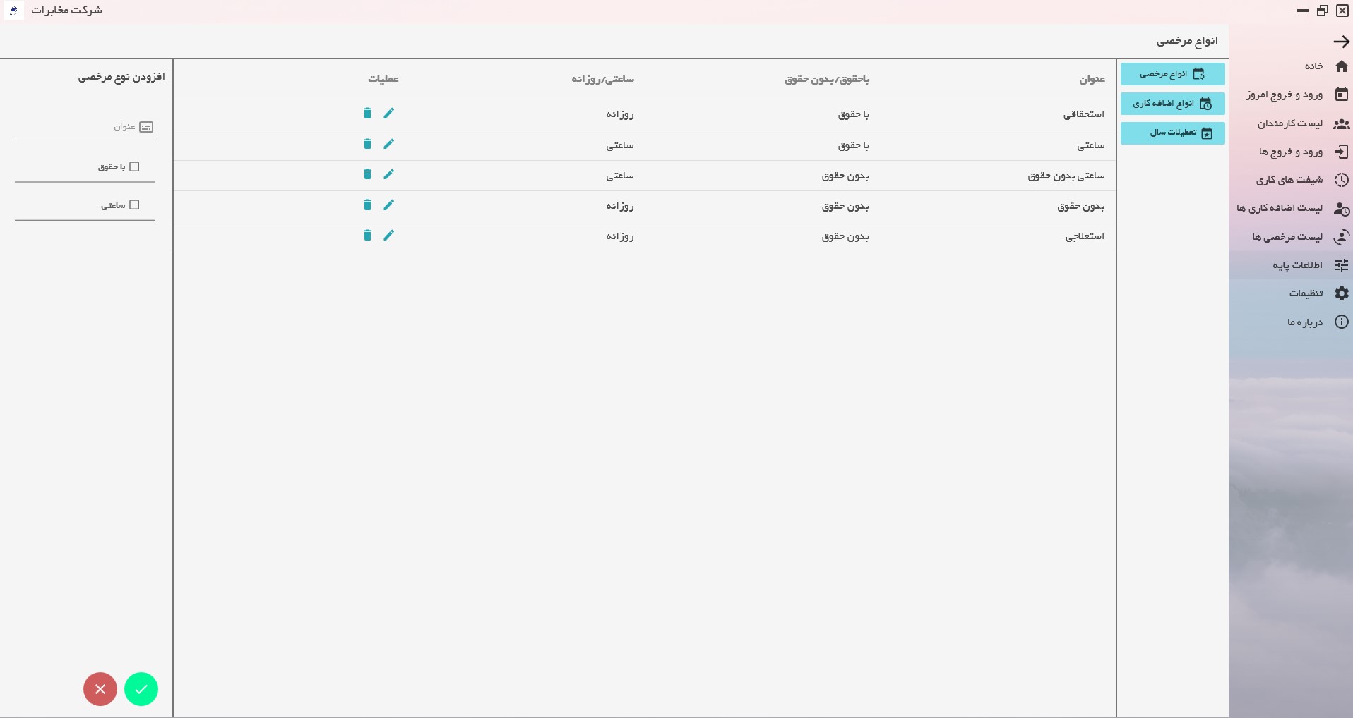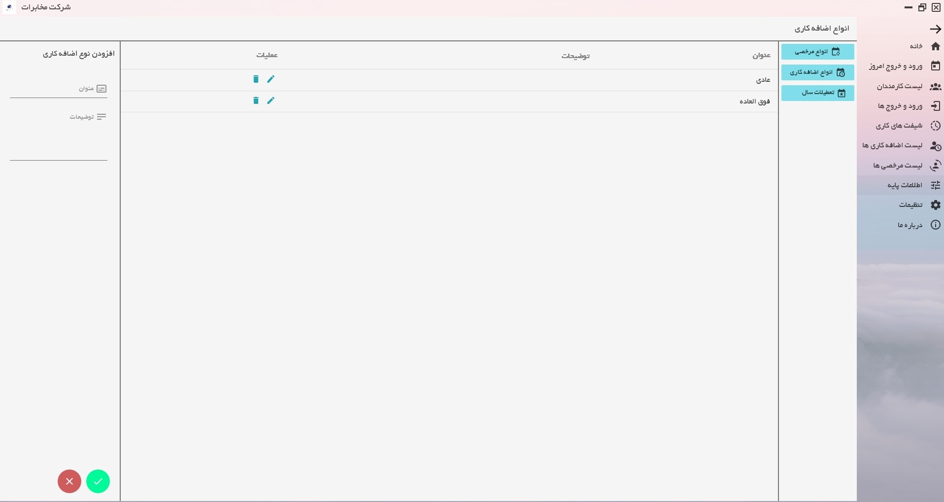 The program also stores employee leave based on different types of paid and unpaid leave, which enables the HR department to accurately calculate employee pay. In addition, this program offers the possibility of registering employees' overtime and provides a complete report of each employee's working hours to the human resources department.