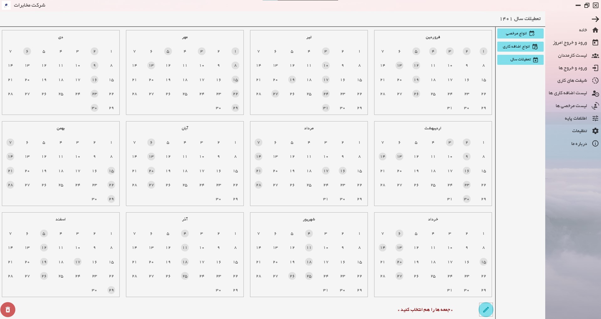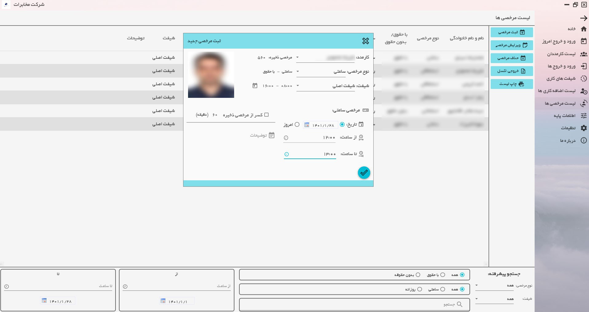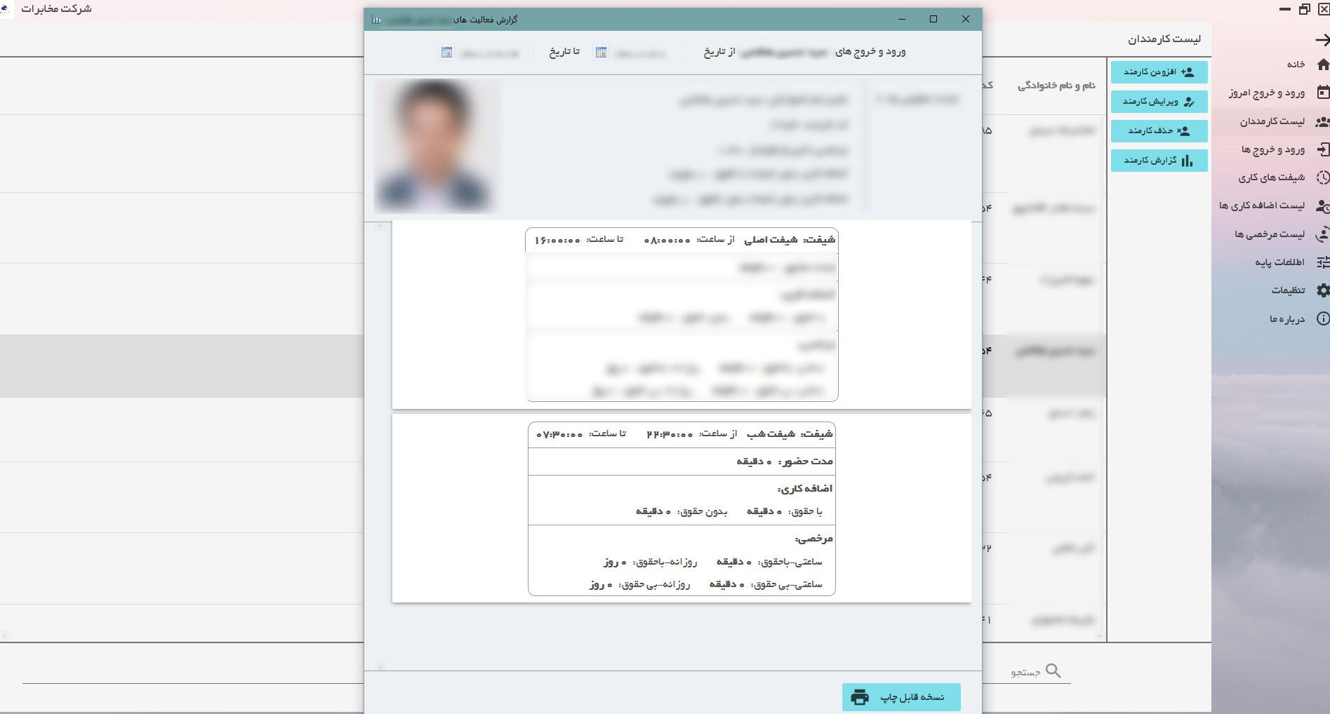 The program also stores employee leave based on different types of paid and unpaid leave, which enables the HR department to accurately calculate employee pay. In addition, this program offers the possibility of registering employees' overtime and provides a complete report of each employee's working hours to the human resources department.