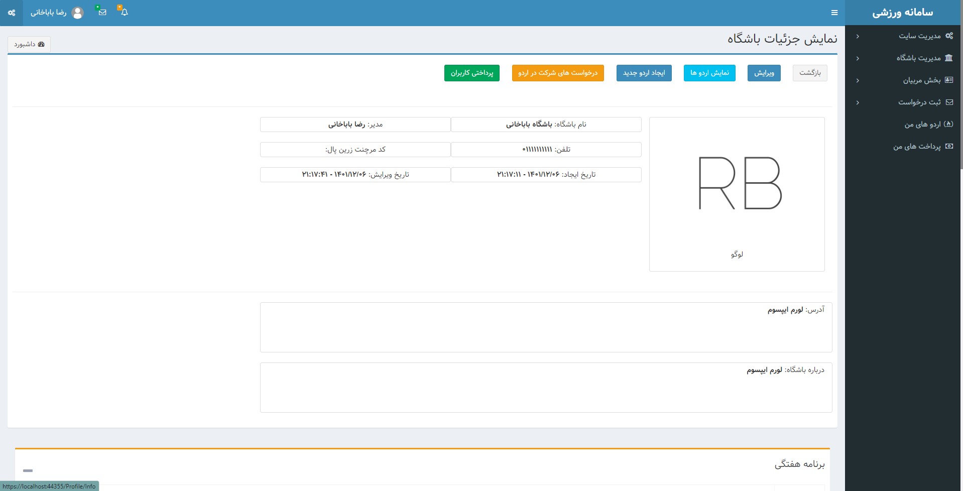 This website is a comprehensive platform designed to help sports clubs manage their operations more efficiently. Asp.net core technology has been used in the design of this platform. This platform is suitable for sports complexes that want to simplify their operations and make it easier for their members to access information.
