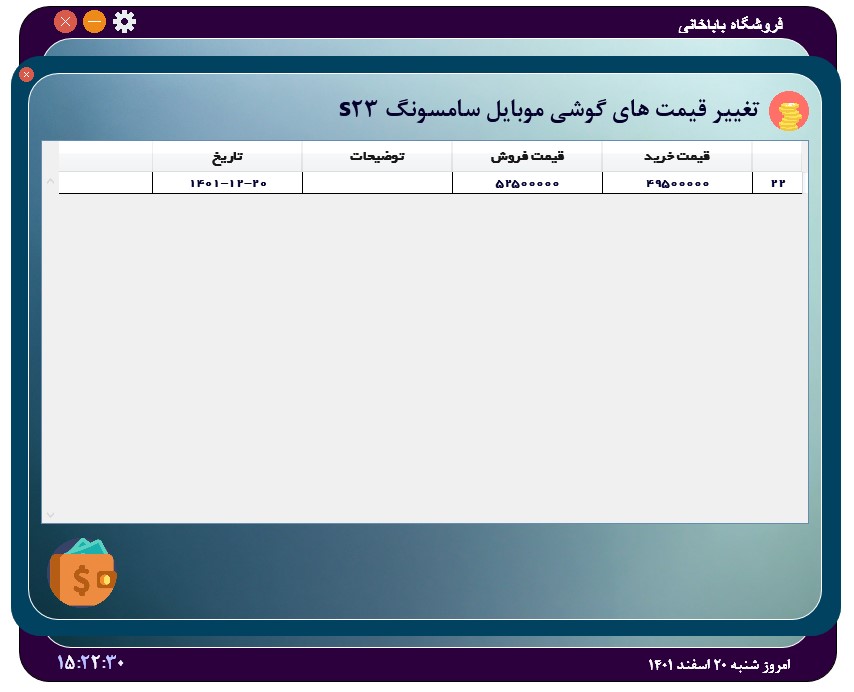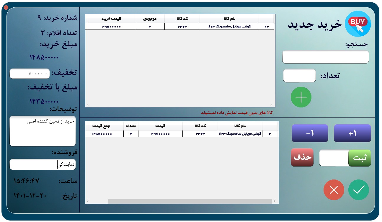 This program also includes the feature of registering the price for the product, which can update it with every price change. This feature helps to always have the history of product price changes.
